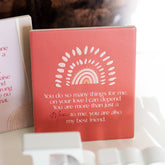 - Comes with stand on the back or hook for hanging and fun, custom packaging!