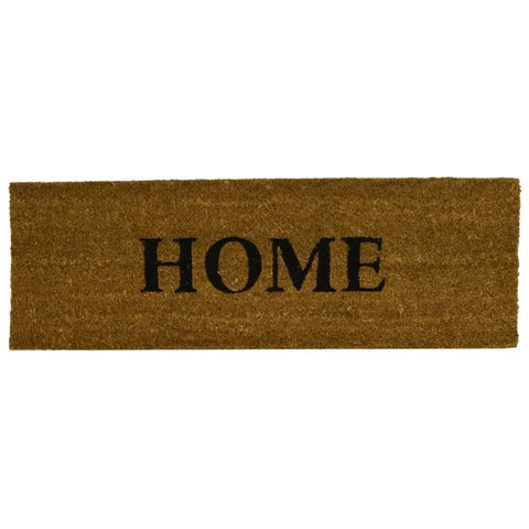 A generous 120cms in length this PVC backed Coir doormat will be ideal for any alfresco areas, french door or larger door openings. A natural jute with the embossed Home sign in classic black, this mat will be not only be practical for everyday use but will look good too!