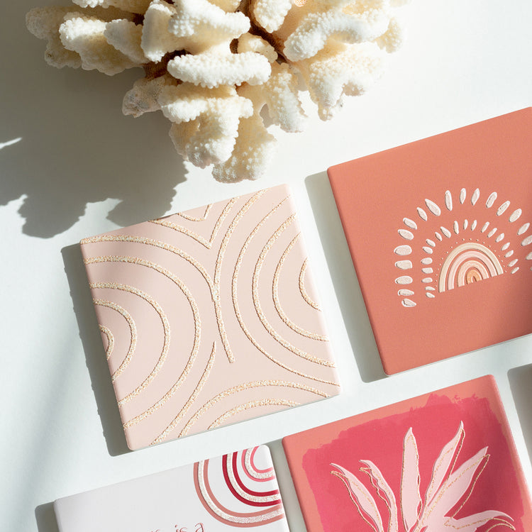 Responding to customer demand for rustic homewares inspired by the Australian landscape, Desert Dunes offers a collection in earth tones. Infused with printed glitter motifs and touches of gold foiling, this range showcases meticulous attention to detail and quality, sure to captivate customers in-store.